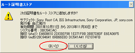 ■上記(5)で表示された認証局が[Sony Root CA 2] の場合のフィンガープリント: |