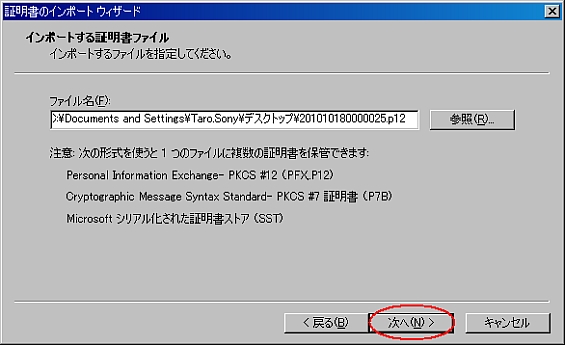 → [コンテンツ] タブ → [証明書(C)]