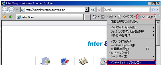 メニューバーの [ツール] → [インターネットオプション]