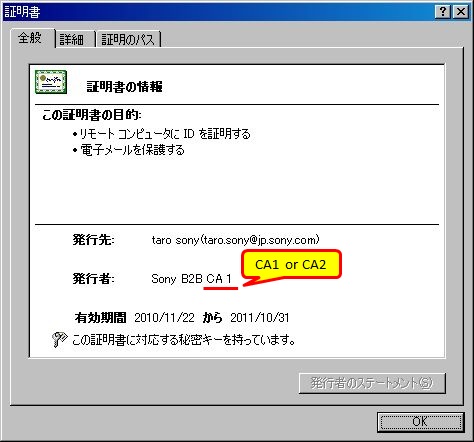 下記と一致すれば、証明書は正当にSonyPKIから発行されたものだと言えます。 認証局(CA1またはCA2) によって、フィンガープリントは異なります。 |