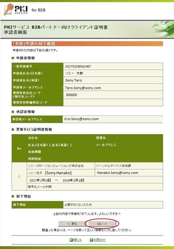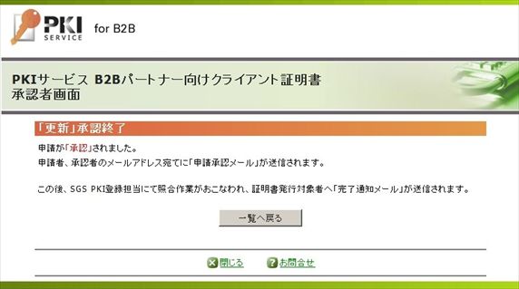 手順(9)-1で「はい」ボタンを押下後、承認終了画面が表示されます。